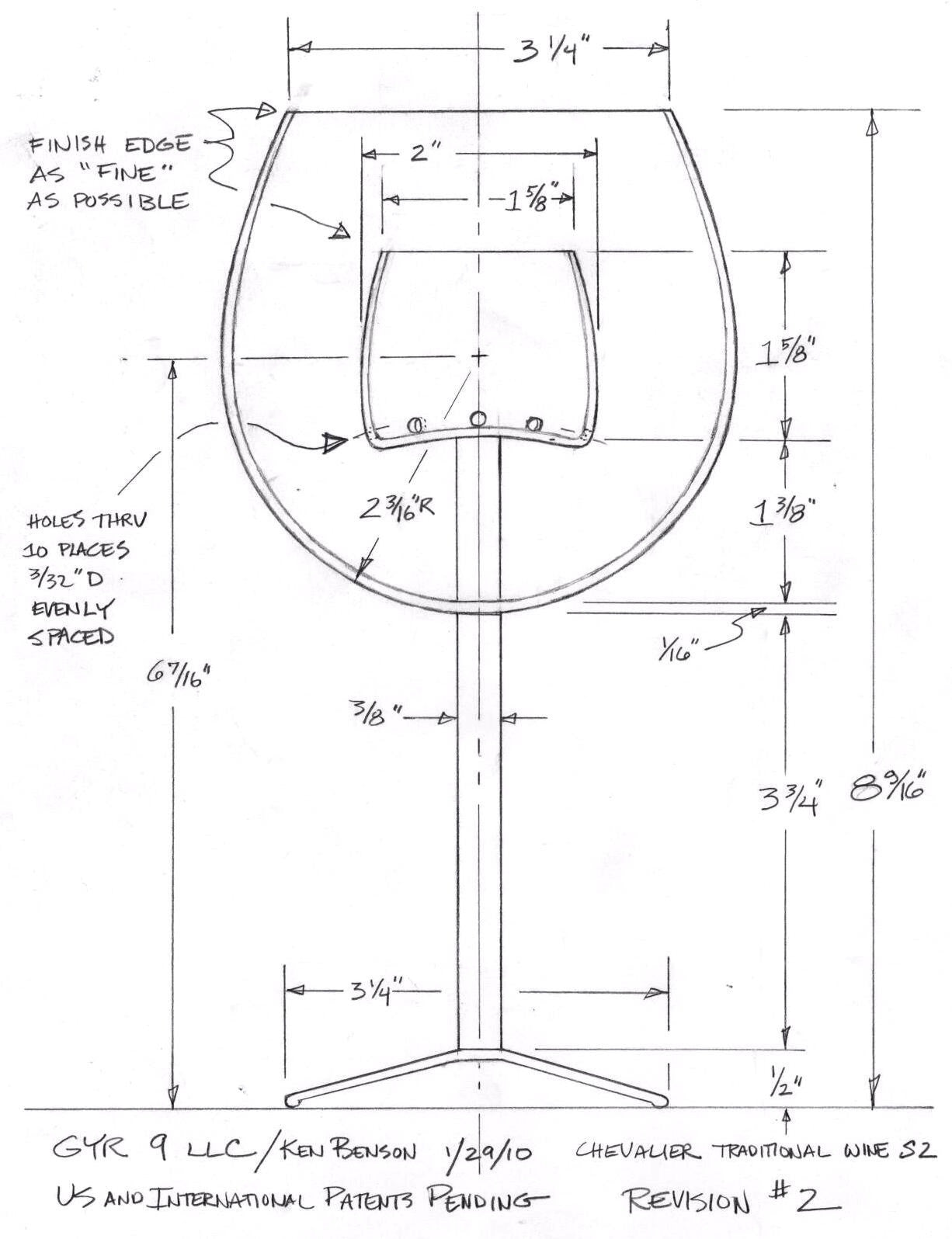 The Chevalier Aerating Wine Glass was conceptualized in California and engineered by Gyre9 in Connecticut.